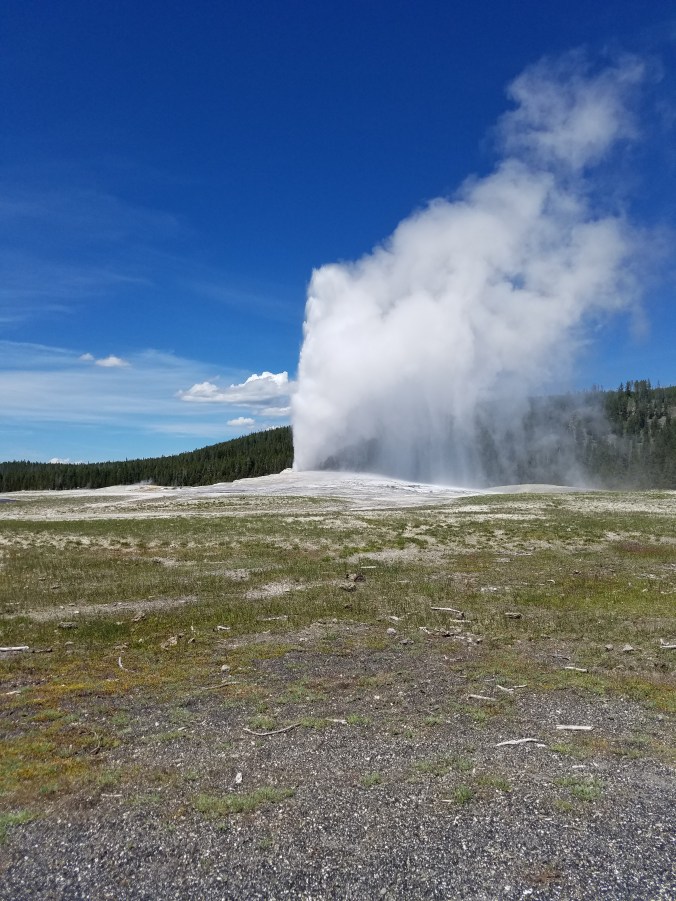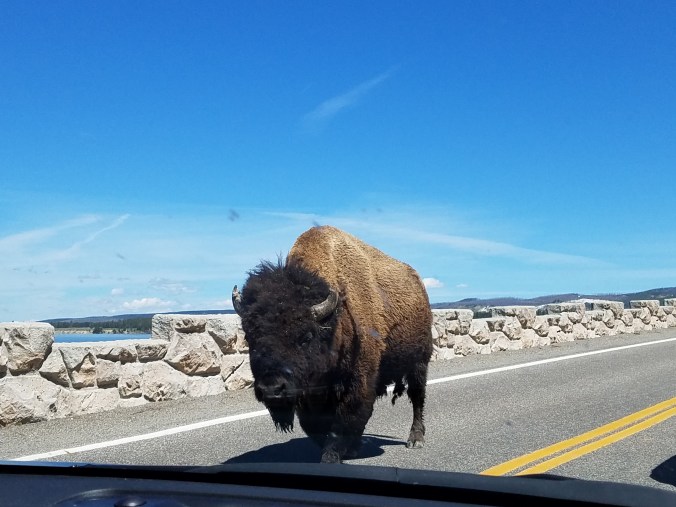 This was the first thing we saw upon entering Yellowstone. Just a buffalo trotting down the opposite side of the road. Like, no big deal, guys. I’m just here, doing buffalo things…